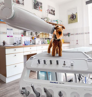 Wir bieten Ihrem Tier eine schonende, aber gründliche Zahnsteinentfernung und Parodontosebehandlung mittels Ultraschall, abgerundet durch eine Politur und Gebissfluoridierung in Kurznarkose. Sollten Zahnextraktionen notwendig sein, führen wir diese ebenso durch wie routinemäßige Zahnkorrekturen bei Nagetieren. Seit Sommer 2025 ist unsere Praxis mit neuer Dentalzahneinheit und hochmodernem Dentalröntgengerät auch für Zahnbehandlungen auf dem aktuellsten Stand der Technik.